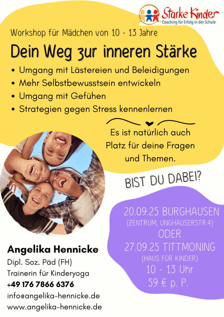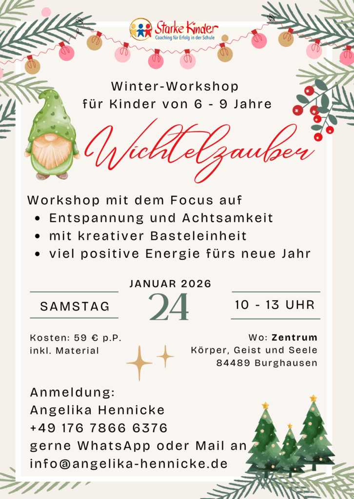 Dein Kind lernt gesunde Strategien für den Umgang mit Stress und schwierigen Situationen kennen und wie es diese im Alltag umsetzten kann. Vorhandene Blockaden werden überwunden damit dein Kind sein Potential entfalten kann.