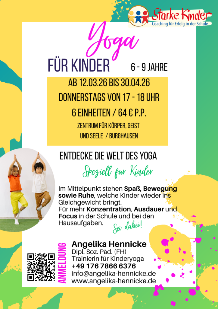 Spaß, Bewegung und Ruhe bringen Körper und Geist in Einklang. Yoga unterstützt Kinder ganzheitlich: Es beruhigt das Nervensystem, stärkt das Selbstvertrauen, fördert Resilienz, wirkt sich positiv auf die Konzentrationsfähigkeit aus und trägt zur emotionalen Ausgeglichenheit bei.